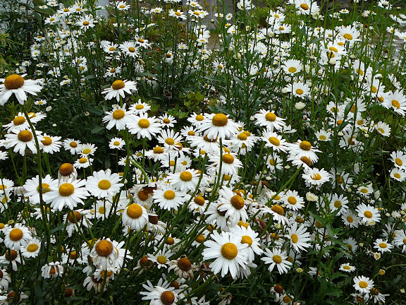 檢查哨外面有很多開得很好的法國菊